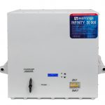 INFINITY 50000 ‒ электронный стабилизатор на основе 16-ступенчатого автотрансформатора с тиристорным управлением. Обеспечивает точность стабилизации на уровне ± 4,3 % и рассчитан на непрерывную работу в промышленных и бытовых сетях электроснабжения, с номинальным фазным напряжением 220 вольт, частотой 50 герц.
