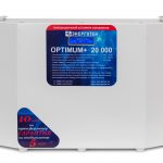 OPTIMUM+ 20000 ‒ электронный стабилизатор на основе 12-ступенчатого автотрансформатора с тиристорным управлением. Обеспечивает точность стабилизации на уровне ± 4,5 % и рассчитан на непрерывную работу в промышленных и бытовых сетях электроснабжения, с номинальным фазным напряжением 220 вольт, частотой 50 герц.