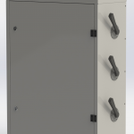 Внутри щита расположены клеммные блоки для подключения его к сети, стабилизаторам и потребителю. На боковой стенке щита расположены ручные рубильники байпаса и индикаторы наличия входного напряжения. Щит можно навесить на стену.
